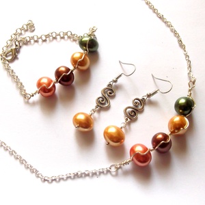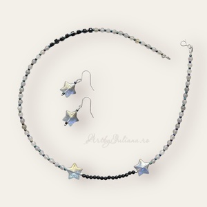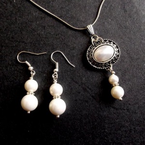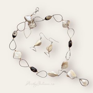 Fiecare element al acestui set transmite o poveste de eleganță clasică și rafinament, aducând un plus de strălucire și sofisticare oricărei apariții. Indiferent dacă sunt purtate la evenimente speciale sau ca accesorii de zi cu zi, colierul și cerceii cu perle completează și înnobilează cu siguranță fiecare moment.
