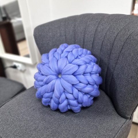 Pernă rotundă decorativă din fir gigant,tricotata manual din lână merinos