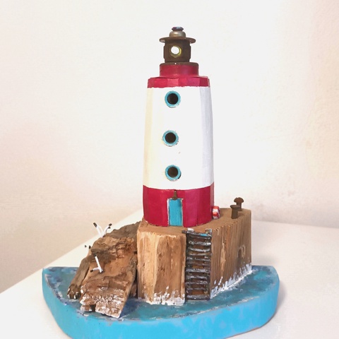 Constructie decorativa din lemn reciclat, cu accesorii metalice reciclate, reprezinta un far marin solid, masiv, si poate fi un cadou unicat , ce atrage toate privirile, indiferent de madiul in care este amplasat.