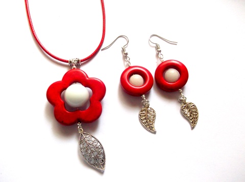 set cu howlite rosu si jad alb 43366