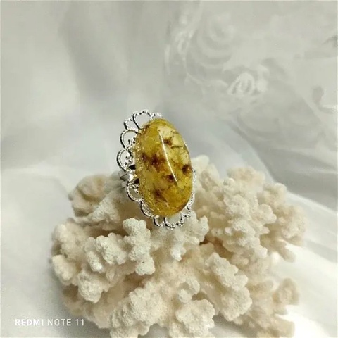 Inel reglabil din otel inoxidbil si rasina cu insertiii de flori naturale