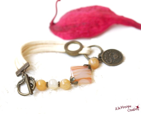 metal culoare bronz, suede, agat, jad
