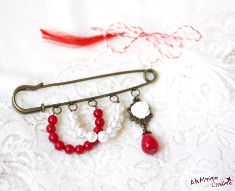 Brosa cu floare de sidef si perle