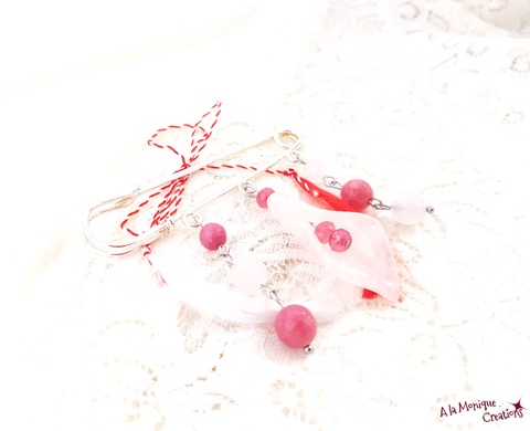 Brosa cu cuart si jad roz