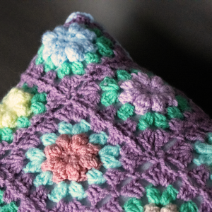 Fata de perna crosetata cu doua fete de 35x35cm.Una dintre fete este din granny squares, iar cealalta simpla.