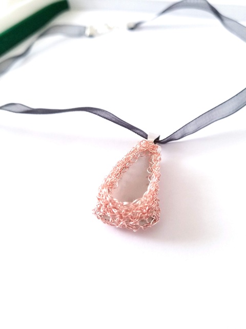 cupru, sticla de mare, seaglass, organza, argint