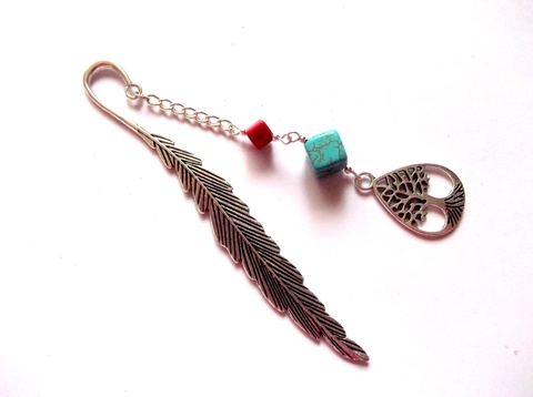 semn de carte cu arborele vietii ,turcoaz si howlite 40783