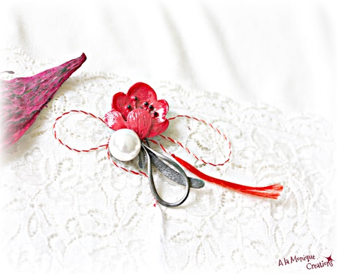 Brosa colier cu mac si perla alba