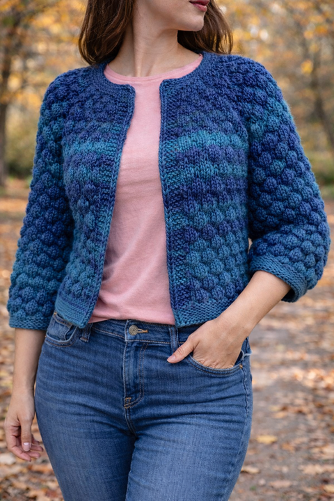 Jachetă tricotată manual din fir cu lână BOBBLE