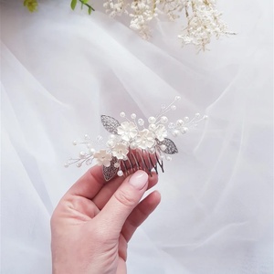 - Material: flori modelate manual, cristale, perle, frunze decorative filigranate