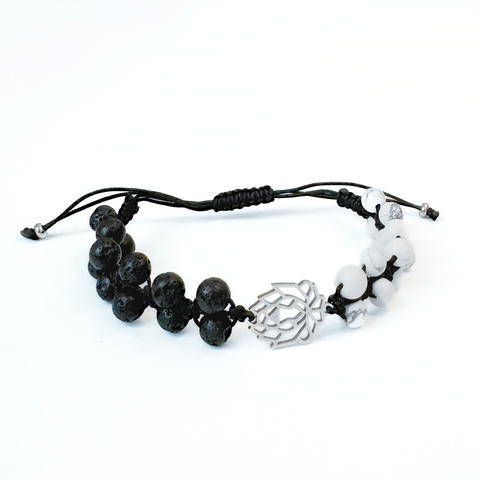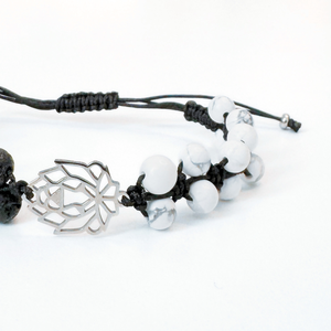 Bratara barbati / unisex Leu din pietre semipretioase de howlit alb si roca vulcanica