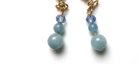 Cercei mici auriti cu margele de acvamarin