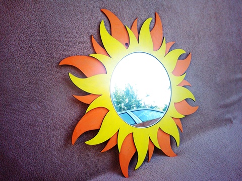 Oglinda sticla cu rama din MDF, 2 straturi de 4 mm, vopsita in culori acrilice, diametru ext 45 cm, diametru int. 20 cm