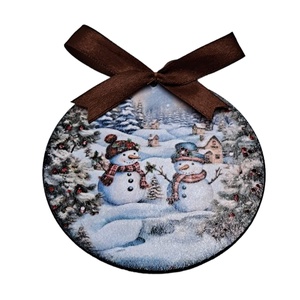 Glob lemn pentru Craciun cu oameni de zapada si casute