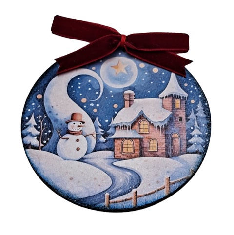 Glob lemn pentru Craciun cu oamen de zapada si castel inzapezit