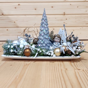 Aranjament cu brad si ingeras, alb auriu argintiu - crăciun - decorațiuni de advent - decor pentru masa de advent - Artynos.ro