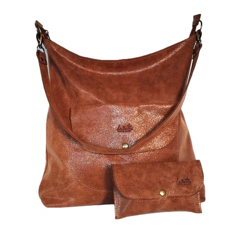 Geantă de umăr cu un portofel simplu, din piele maro Fontana 009 L