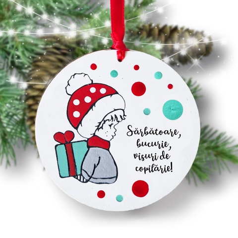 Glob pom Craciun Copil pictat manual personalizat cu mesaj