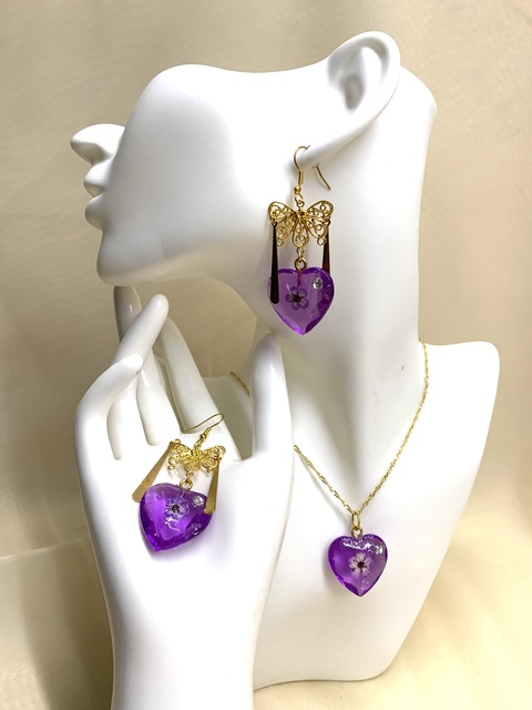 set bijuterii handmade unicat din rasina si flori naturale