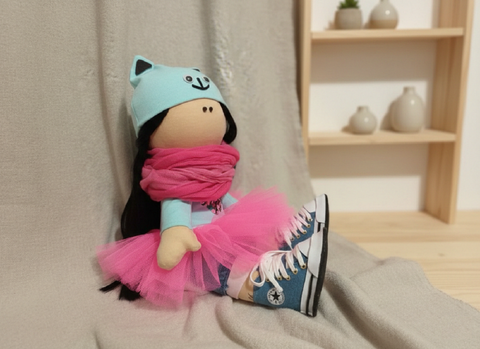 Păpușă roz cu fustă din tul