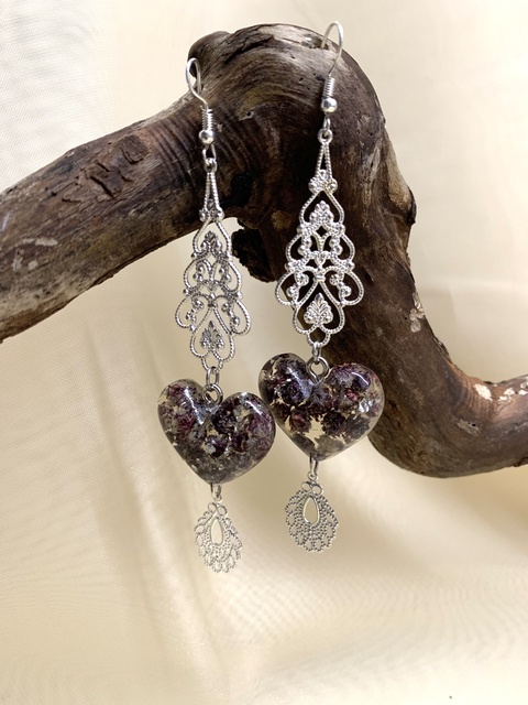 - Material/Conținut flori naturale, foita argint, inox, rasina