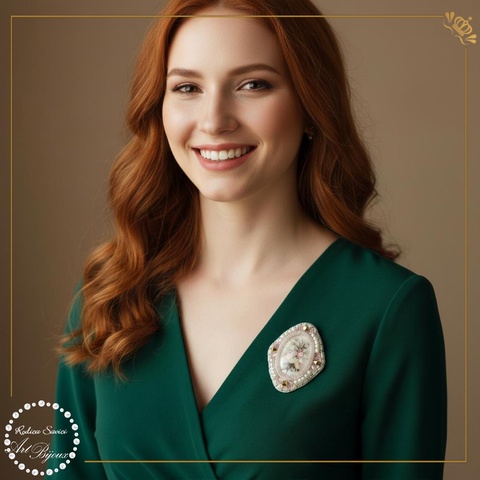 BROȘĂ ovală elegantă cu trandafiri roz