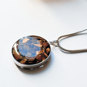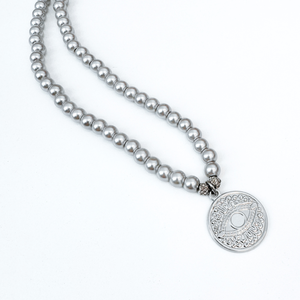 Colier argintiu din otel inoxidabil cu pandantiv rotund - ochi de tigru