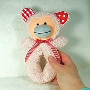 Maimutica simpatica zornaitoare pentru bebelusi ,cadou pentru botez ,jucarie handmade pentru nou nascut.