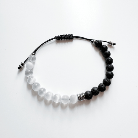Bratara unisex / barbati din selenit natural si margele din lava vulcanica