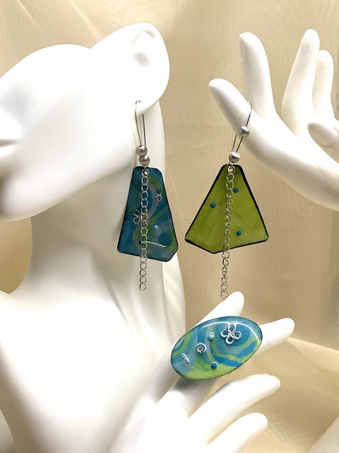 set bijuterii handmade unicat- pictat - din rasina 00549