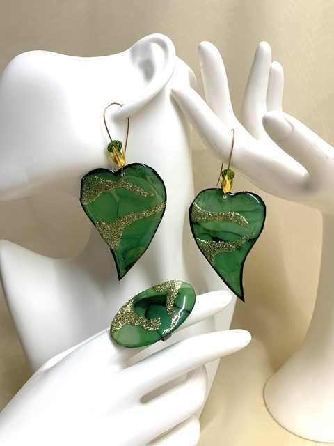 Set bijuterii handmade unicat pictat manual - din rășină 00553