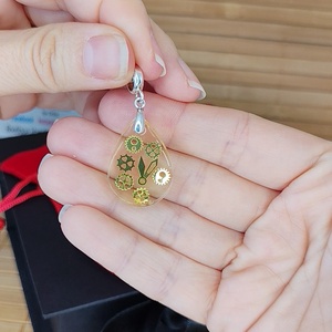 Pandantiv din rășină lacrimă cu inserții metalice aurii