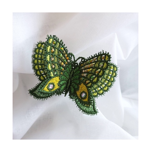Brosa fluture 3D verde cu auriu