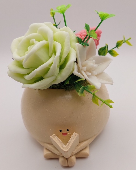 - Material: szappanalap, szappanszínezék, illatolaj, fapálca, ragasztó, műnövény, virágtűzőhab, fémdrót