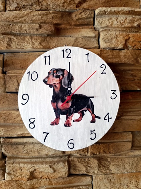 Ceas de perete ambarcațiuni din lemn cu câine teckel
