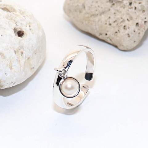 Verighetă cu perlă albă mobilă, inel de damă din argint, mărimea 59, reglabil (EGY.199)