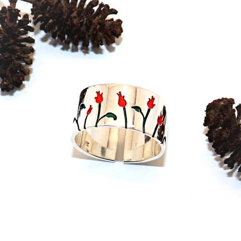 Inel lat din argint cu trandafir roșu, mărimea 60, reglabil (EGY.227)