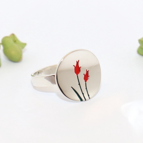 Inel de damă din argint cu trandafir roșu, rotund, mărimea 60, reglabil (EGY.235)