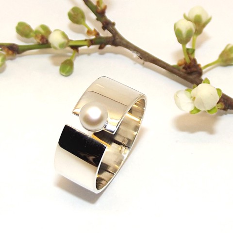 Cerc lat cu perlă albă, inel de damă din argint, mărimea 60, reglabil (VSZÉ.29)
