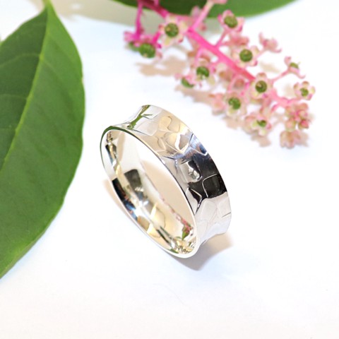 Inel concav din argint, pătrat martelat, mărimea 63 (VHO.28)