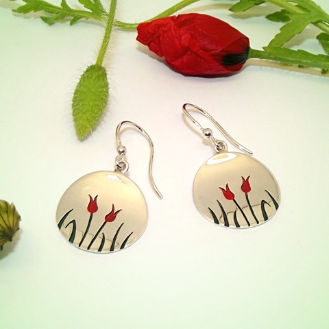 Lalea roșie, rotundă, pandantiv, pereche de cercei din argint pentru femei (ETK.12)