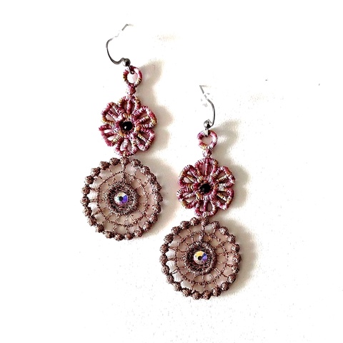 Cercei Brodati Cupru Roz