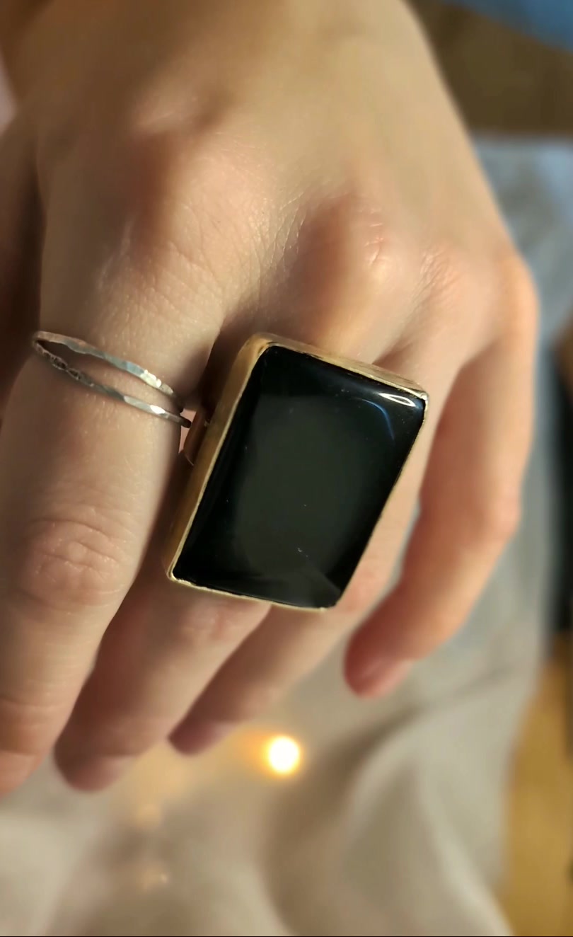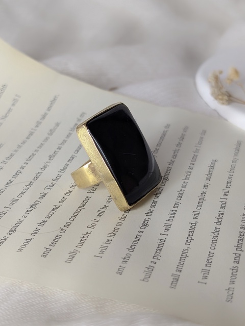 Inel Statement din Alamă cu Piatra de Onix Negru "Midnight"