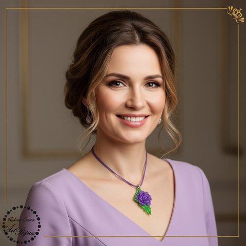 PANDANTIV trandafiraș pe frunză - MOV DESCHIS