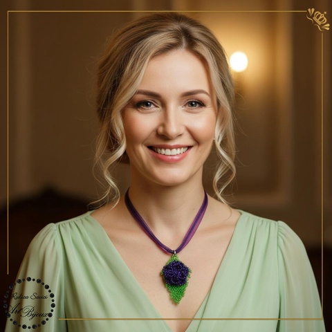 PANDANTIV trandafiraș pe frunză - MOV ÎNCHIS