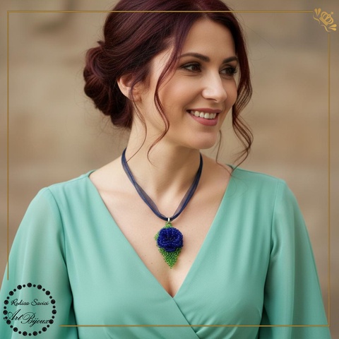 PANDANTIV trandafiraș pe frunză - ALBASTRU ÎNCHIS