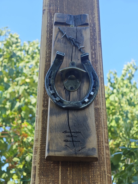 - Material: lemn, stejar, doaga de butoi, potcoavă, sârmă ghimpată