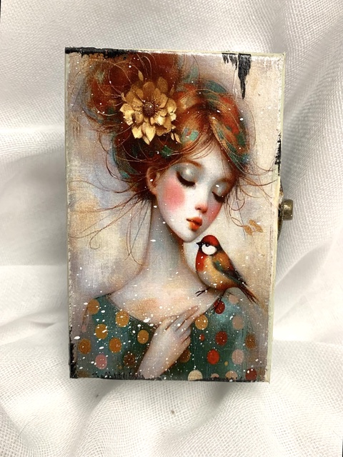 - Technică: decoupage, transfer și tehnici șervețel, pictură