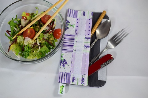 Suport pentru tacamuri, periute de dinti, penar, portfard reutilizabil din textil, lavanda