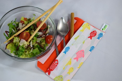 Suport pentru tacamuri, periute de dinti, penar, portfard reutilizabil din textil, pesti